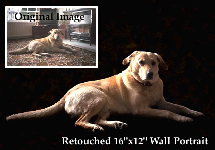 Unwanted, or distracting backgrounds can be removed, like the example right, where a cluttered snap of a much-loved but departed family pet, has been transformed into a studio-style pet portrait.